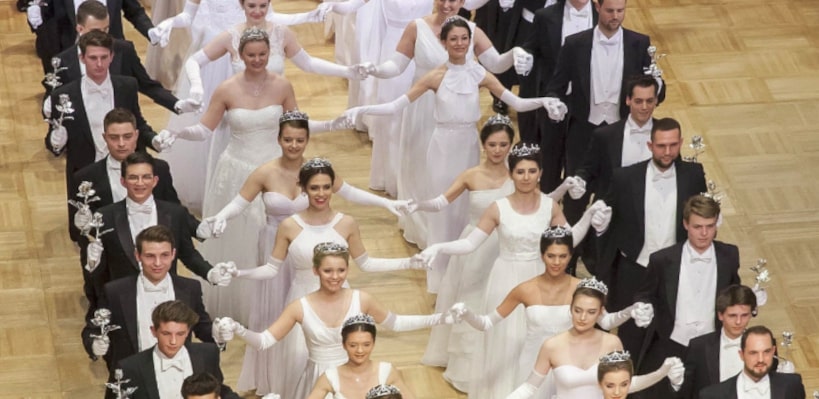 Откроет бал Парад дебютантов. 150 пар молодых людей со всех концов света от 18 до 25 лет только один раз в жизни имеют шанс войти в самый красивый бальный зал мира и вальсировать в нем в белоснежныж бальных платьях с диадемами и во фраках с галстуком бабочкой.