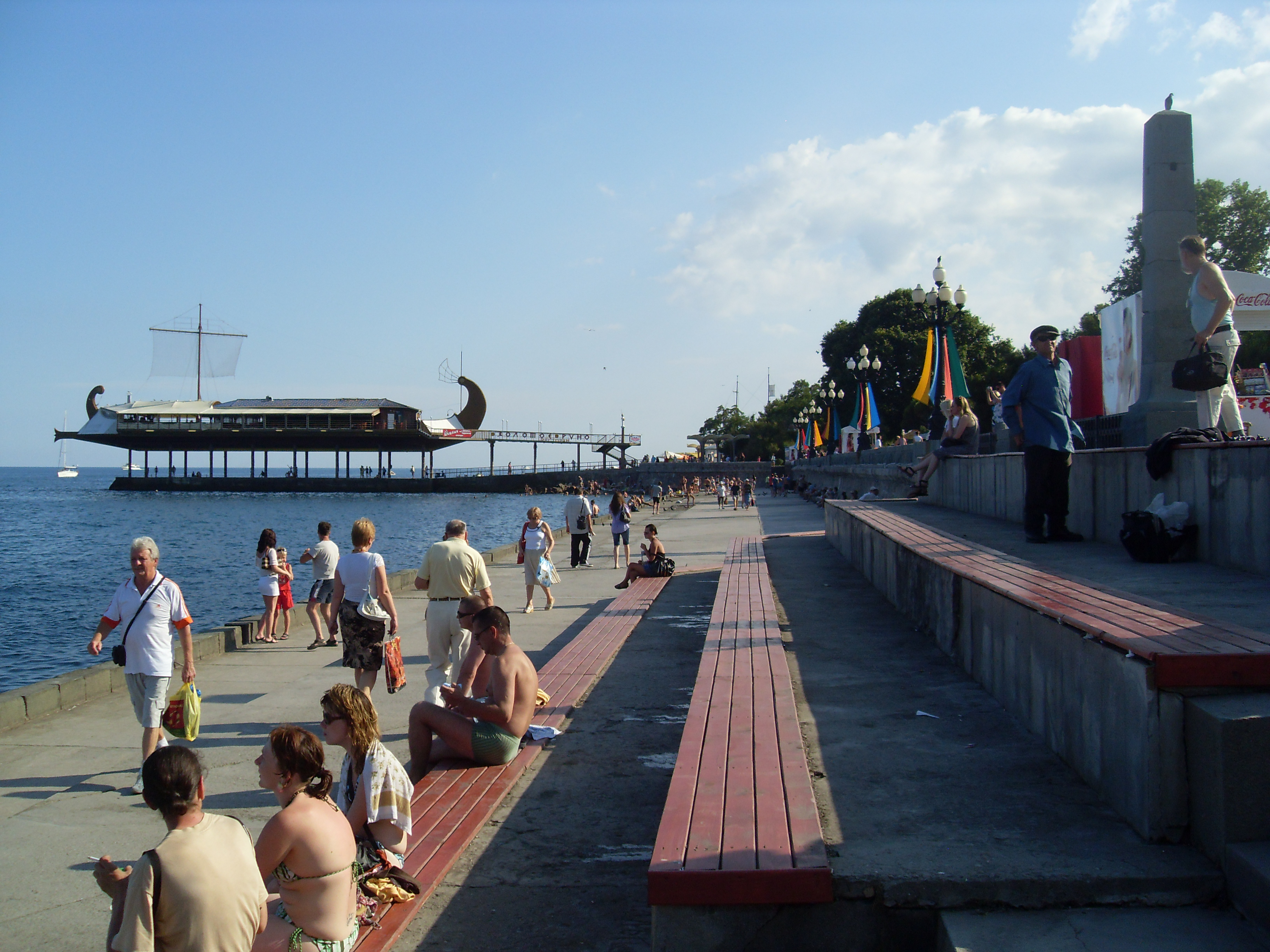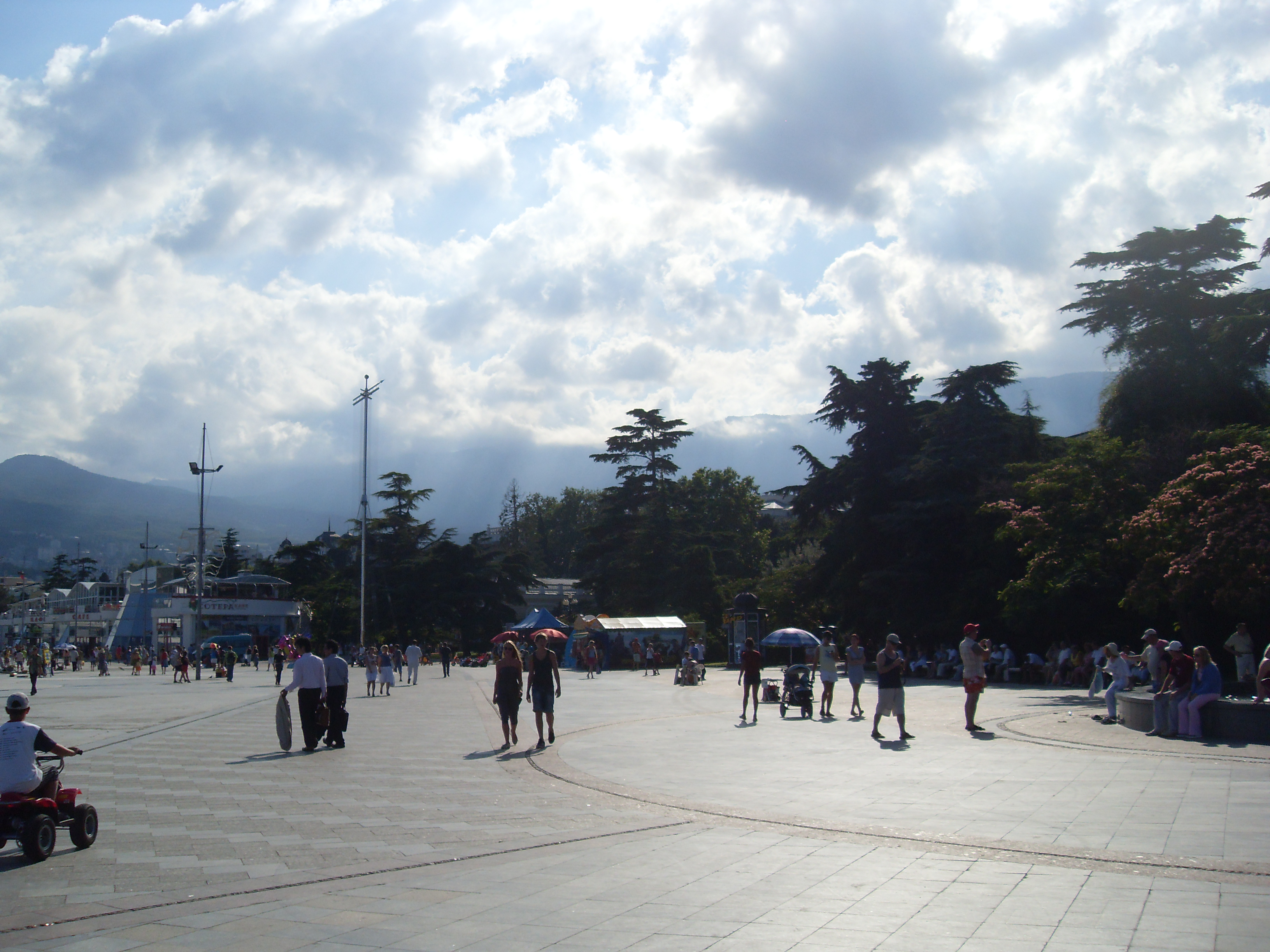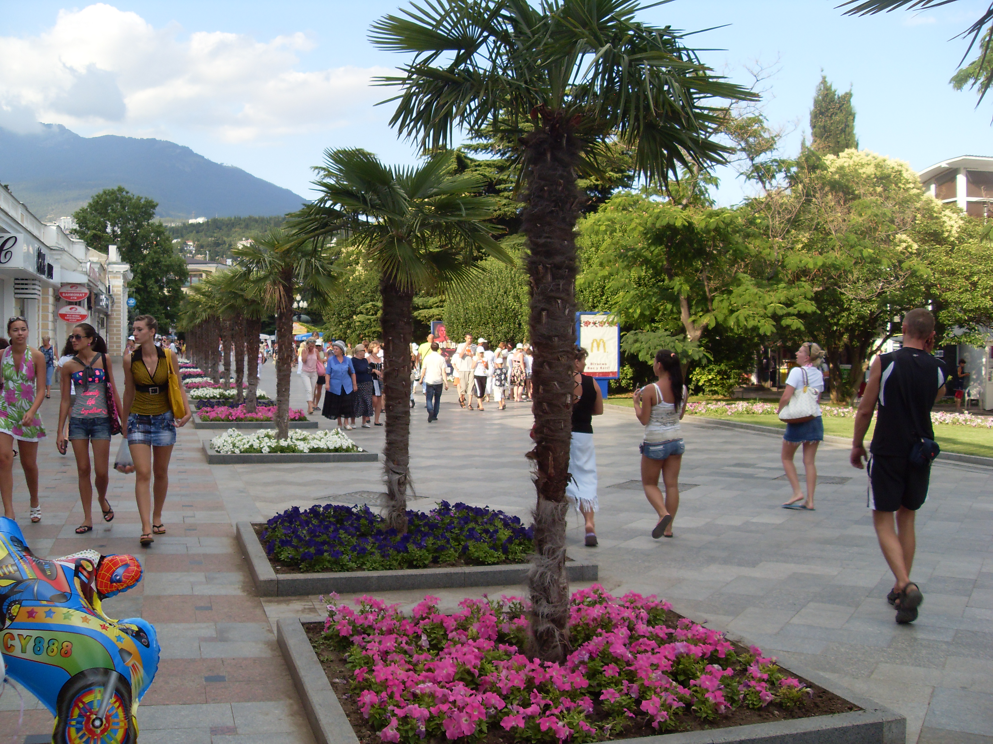 The atmosphere of Mediterranean - embankment inundated a sun, palms and cypresses, fresh sea-breeze, warm and comfort off-season did from Yalta fashionable and popular place of rest. Leo Tolstoy and Anton Chechov lived here, members of tsar's house and noble aristocrats built the summer residences here, tsar Alexander III - Massandrovskiy Palace, emperor Nickolay II - Livadiyskiy.