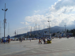 In our time on the embankment of Yalta you can see people strolling in all seasons. Painters exhibit their paintings here, and residents and guests of the city meet to exchange news, to show oneself and look at others.
